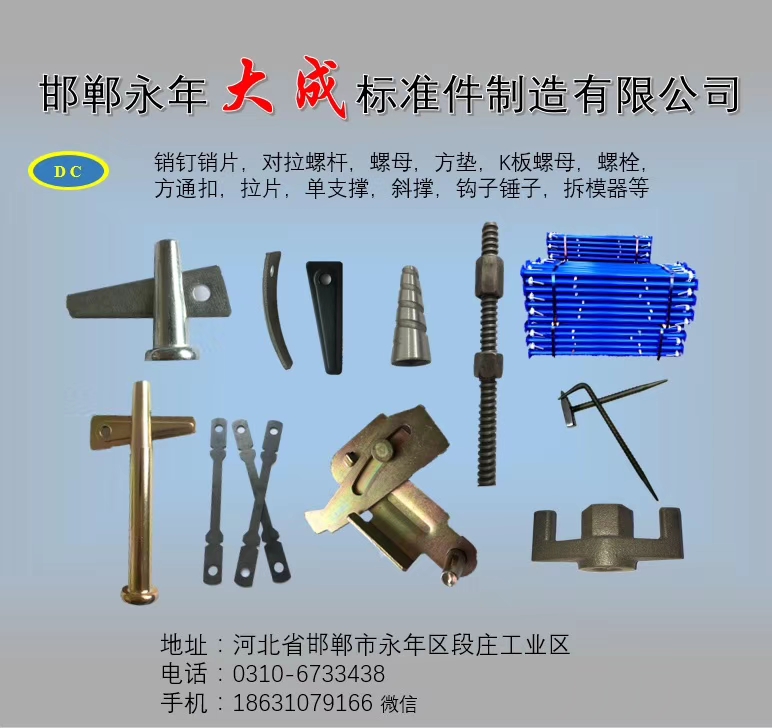 點擊數:49292019-07-08 15:54:18 來源: 鋁模板銷釘_鋁模板配件_建筑扣件螺栓_扣件螺絲生產廠家-永年區大成標準件制造有限公司